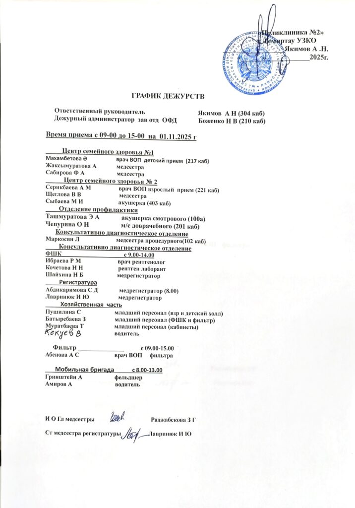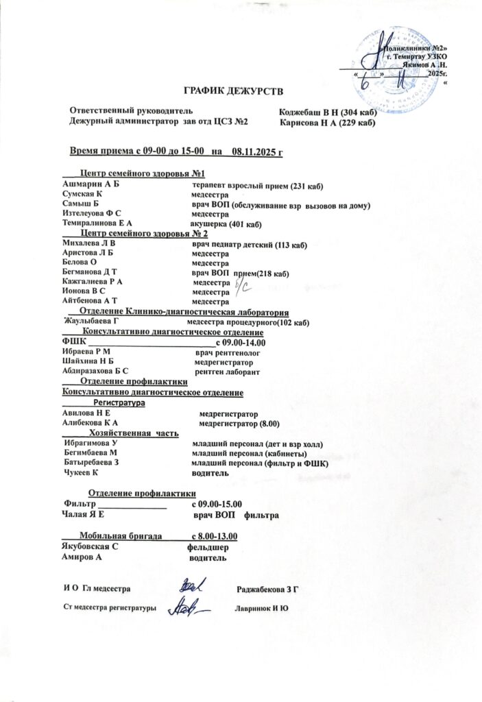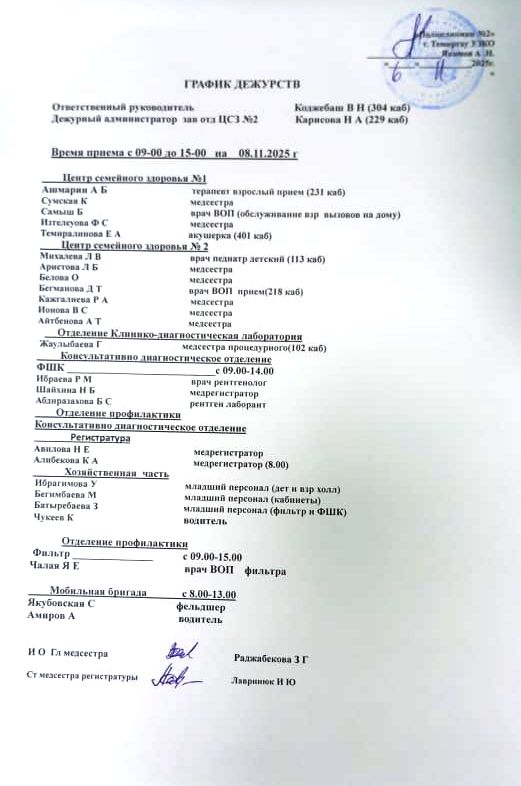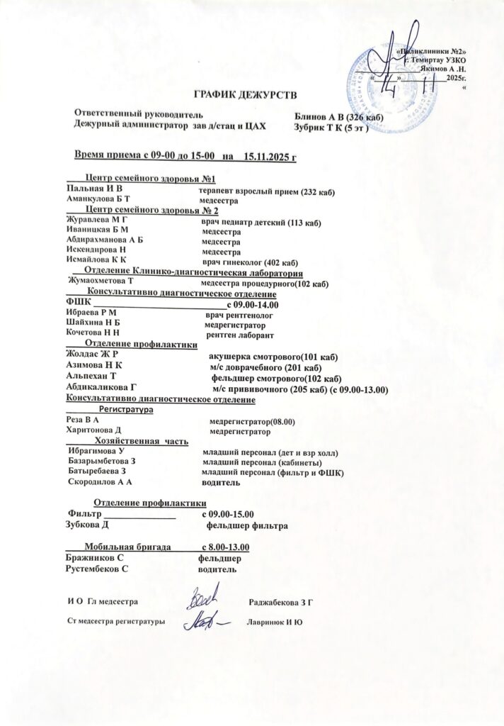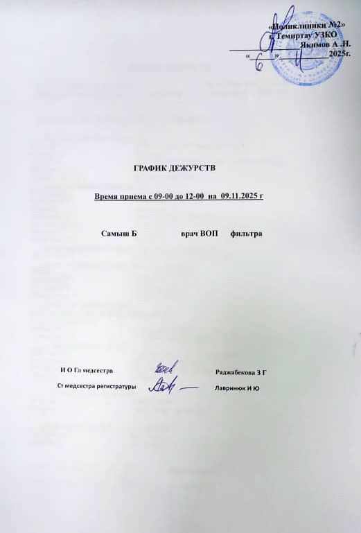 КГП «Поликлиника №2 «г Темиртау уведомляет об окончании конкурса на участие в дисциплинарном совете.
